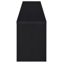 Upgrade your entertainment space with this black TV stand, crafted from engineered wood with a paper laminate veneer for durability and a sleek finish. The clean lines and modern design include open shelves for electronics, a wire management hole to reduce clutter, and three concealed drawers for organized storage. Perfect for flat-screen TVs, this media console combines style and functionality for any contemporary setup.