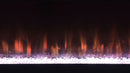 Emphasize ambiance with this modern TV stand, constructed from MDF and white glass, featuring a visual flame box insert. Its clean-lined silhouette is fresh and contemporary, making it a perfect focal point for TV entertainment or an ambient room setting. The visual flame box, made from a fire box and acrylic crystals, offers a realistic 3D flame simulator with multi-color settings, all controlled by a remote. Please note, this feature is purely for visual effect and does not generate heat. Easy to maintain due to its white glass material, this inviting TV stand accommodates televisions up to 72 inches and also includes a Bluetooth speaker control.
