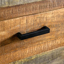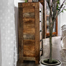 GALANTHUS Chest, 23 1/2"L X 17"W X 45 1/4"H, 93.44lbs. Variations in the wood grain color make this five-drawer chest a handsome addition to any rustic room decor. Made of solid wood mango, the piece is durable and resistance to water damage. The front panel is designed like a picture frame with each corner mitered and joined masterfully for a seamless look. The drawer handles are metal and finished in matte for that trendy barnyard look.