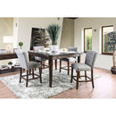 Cool gray linen-like fabric accentuates the button tufted chairs while dense foam cushions and leg rests provide undisputed comfort to keep you happily relaxed. Differentiate your dining room with these comfortable and laid-back transitional style counter height chairs. Product Dimensions: 19.25"W x 25.25"L x 40.5"H