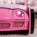 Twin Bed Height: 23.50" Width: 45.50" Length: 82.50" Set your child on the road to a dreamland of extravagance in this fashionable and luxurious Pretty Racer bed. The sturdy construction boasts a flashy finish and working lights - a dynamic pink-themed delight your child is sure to enjoy.