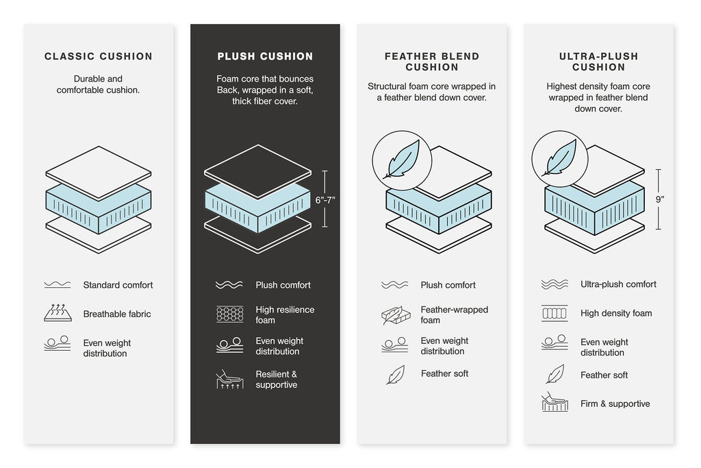 • High-resiliency foam cushions wrapped in poly fiber